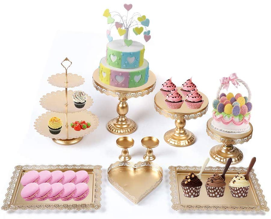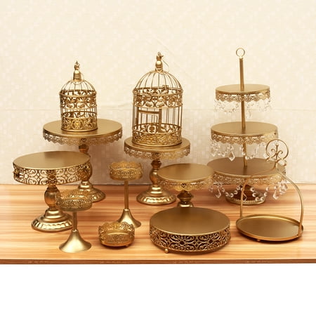Luckyfine 6pcs set crystal cake holder cupcake stand and towers. The elegant appearance comes from the gold tone finish that is accented by faux clear crystals. Dessert stand serveware tiered serving trays standing tiered server tiered cake stand candy display octagon silver plate. Average rating:0out of5stars, based on0reviews. 14 l x 8 w x 1 edge design height each tier can hold approx (28x) 2 desserts.